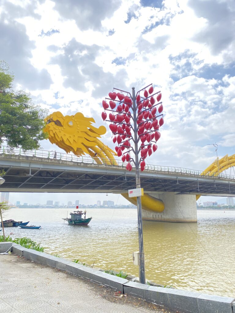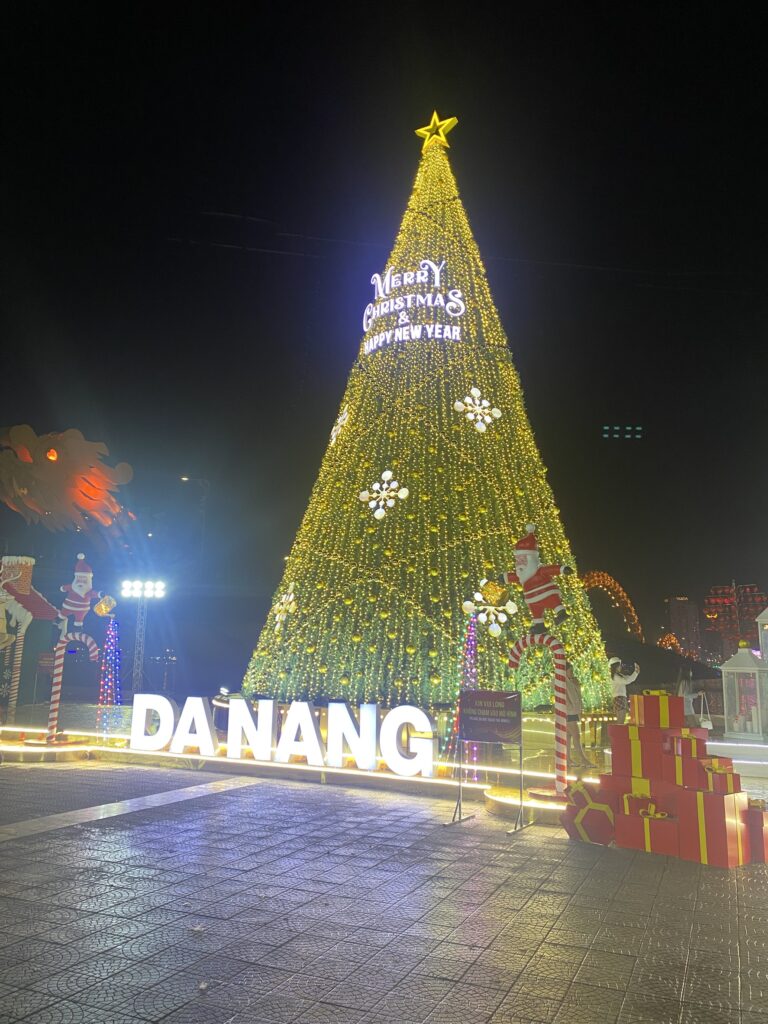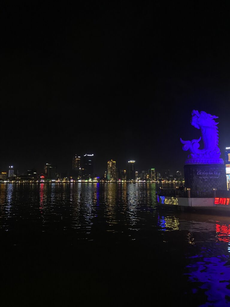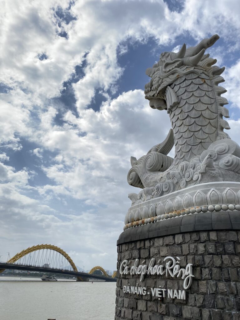 4日目は、ダナンの名所であるリンウン寺、ドラゴン橋、ミーケビーチを訪れました。リンウン寺では巨大なレディ・ブッダ像と静かな境内に心を落ち着かせ、ドラゴン橋では近代的な都市景観に触れました。ミーケビーチでは、美しい砂浜と雄大な海を前にベトナムの自然の豊かさを実感しました。生徒たちは自然と文化が調和したダナンの魅力を短い時間ながらしっかりと体感することができました。