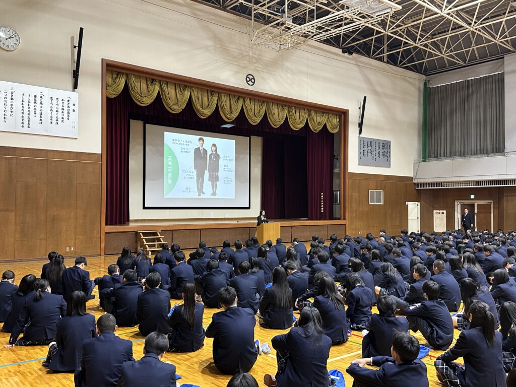 第一印象は6秒で決まる、その第一印象を決めるのは全て見た目、つまり視覚情報であるからこそ制服を正しく着こなすことが大切であると教わりました。他にもネクタイの結び方から、服の清潔感の保ち方、各カラーの意味まで教わり、より一層、真新しい制服をきちんと着こなす意識が高まりました。